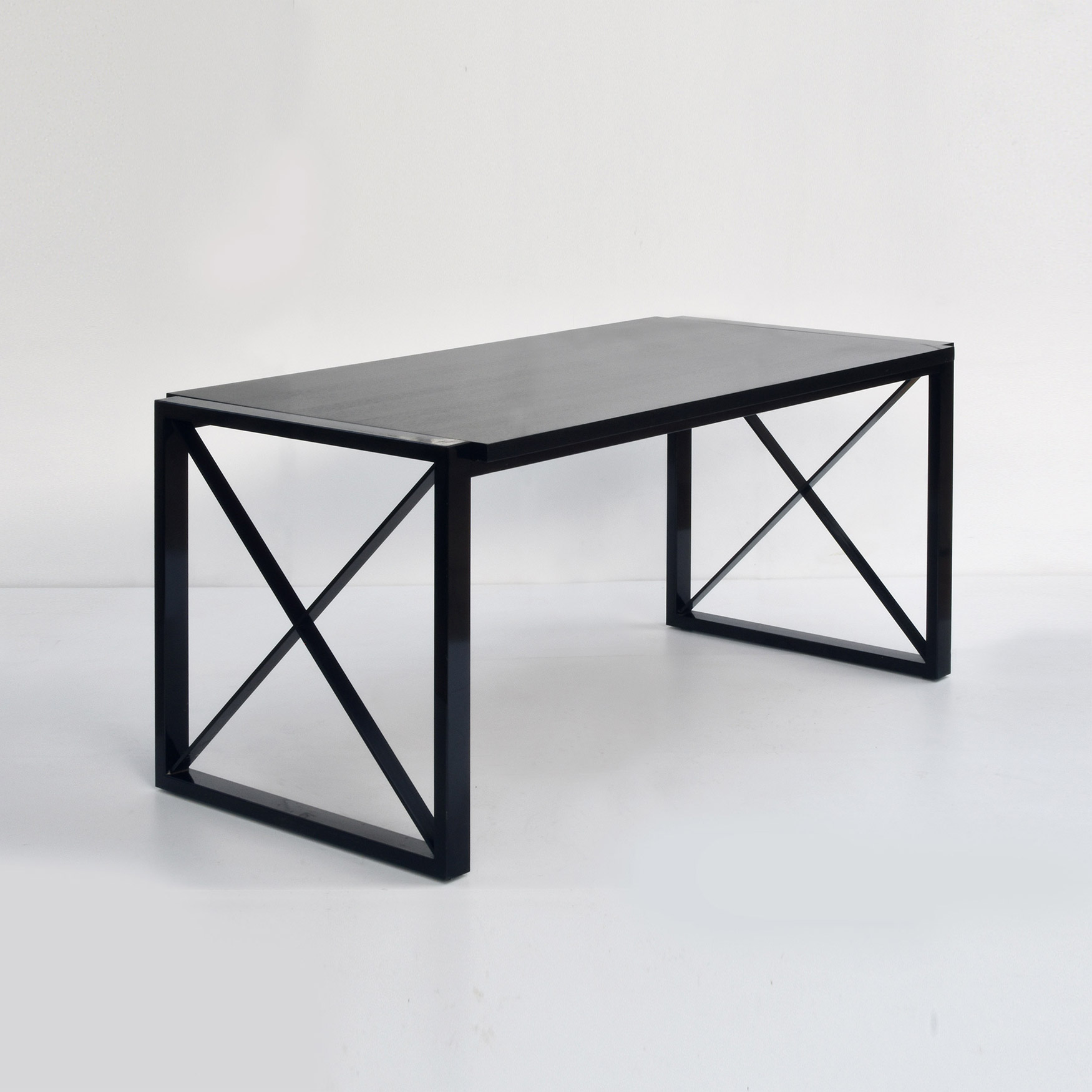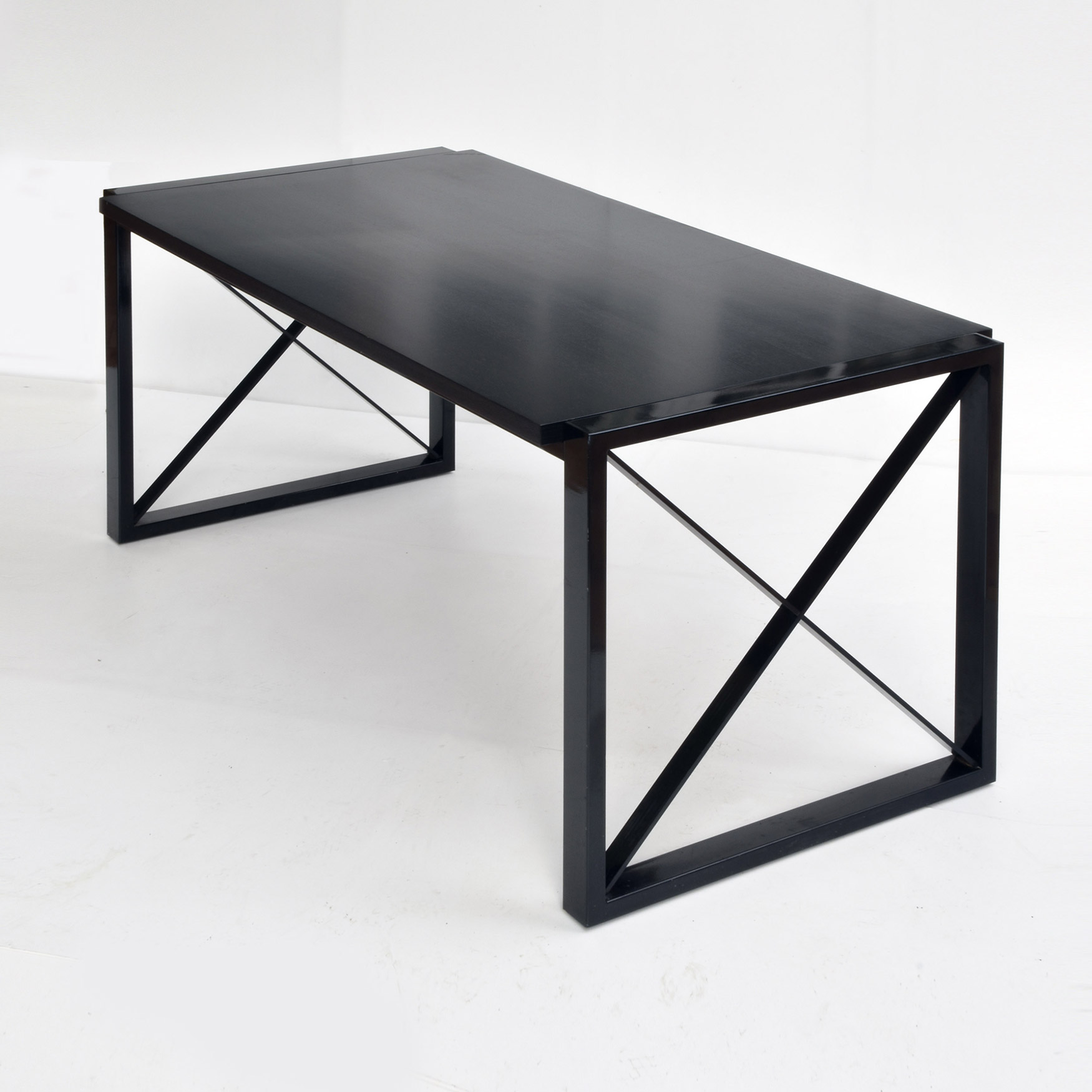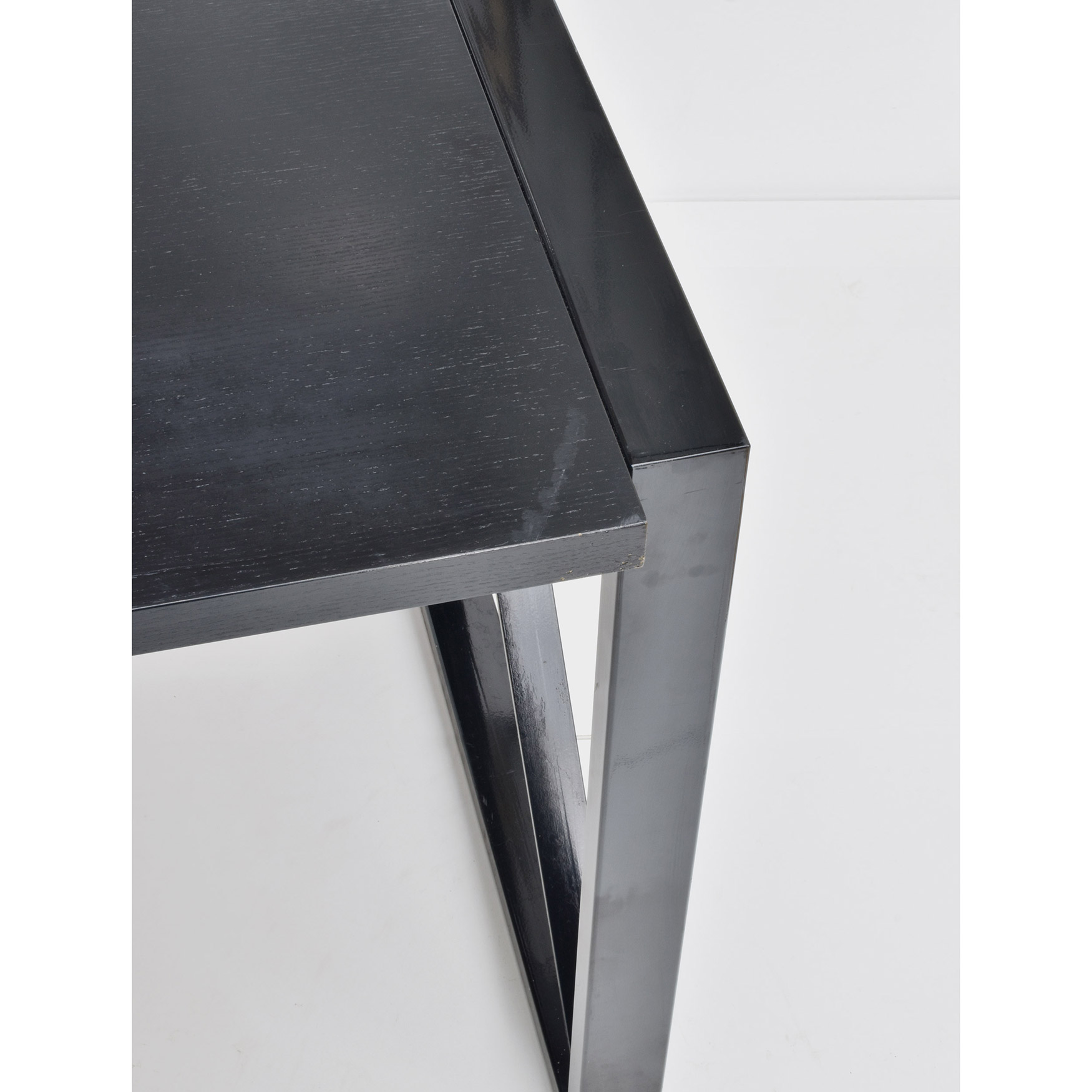 Structure en acier laqué noir et plateau bois massif teinté noir.