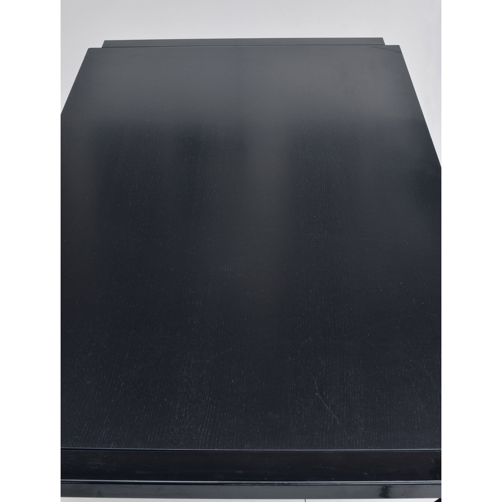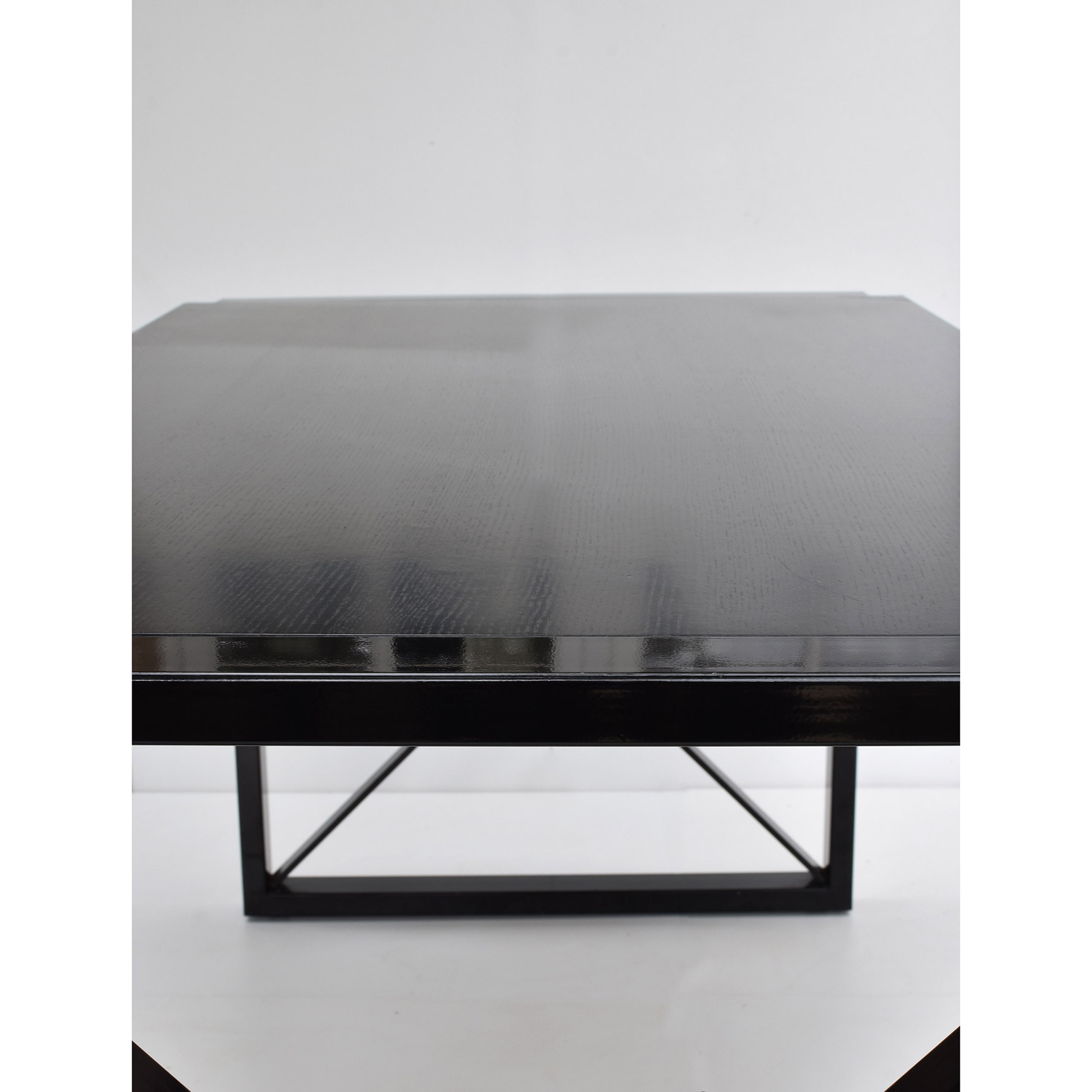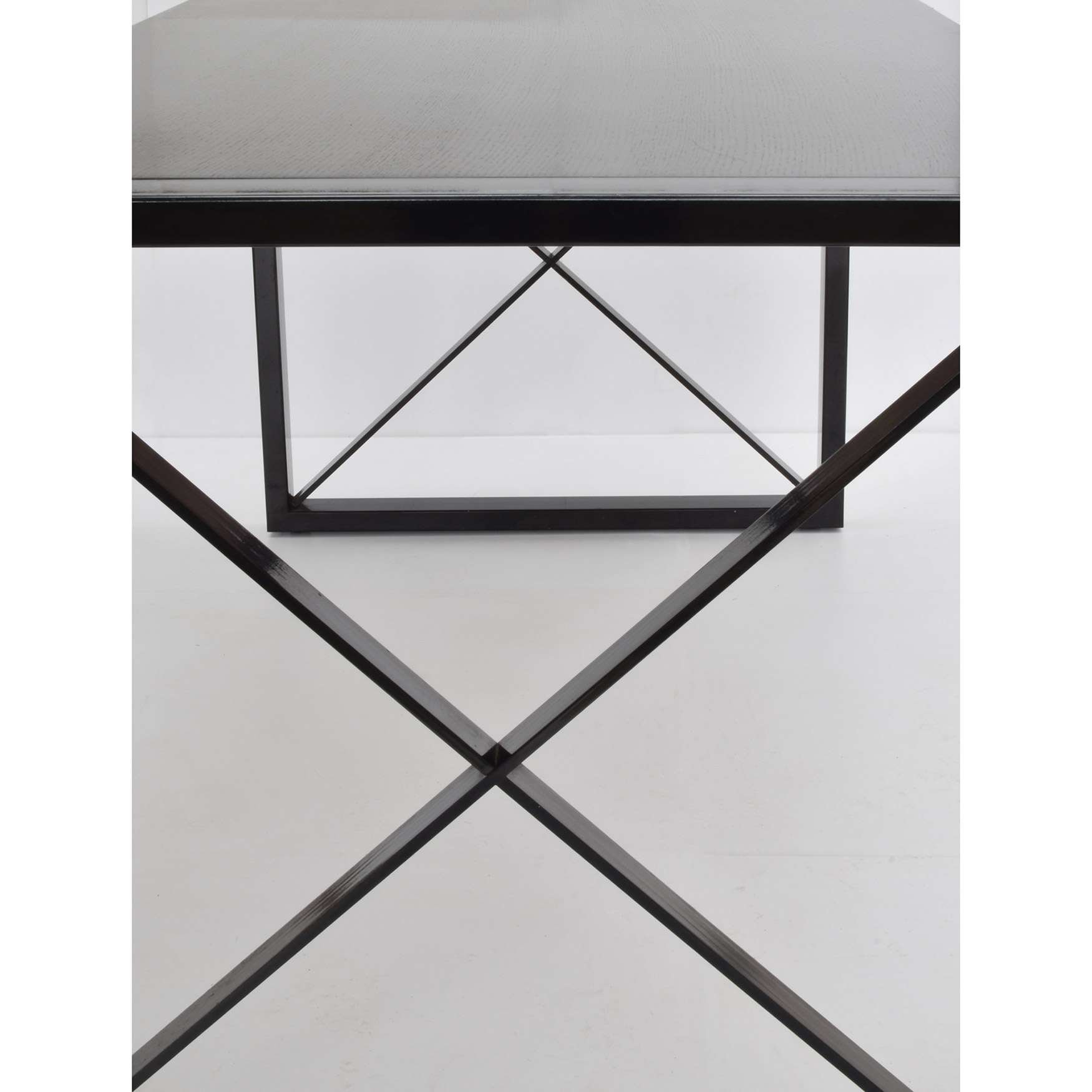 Structure en acier laqué noir et plateau bois massif teinté noir.